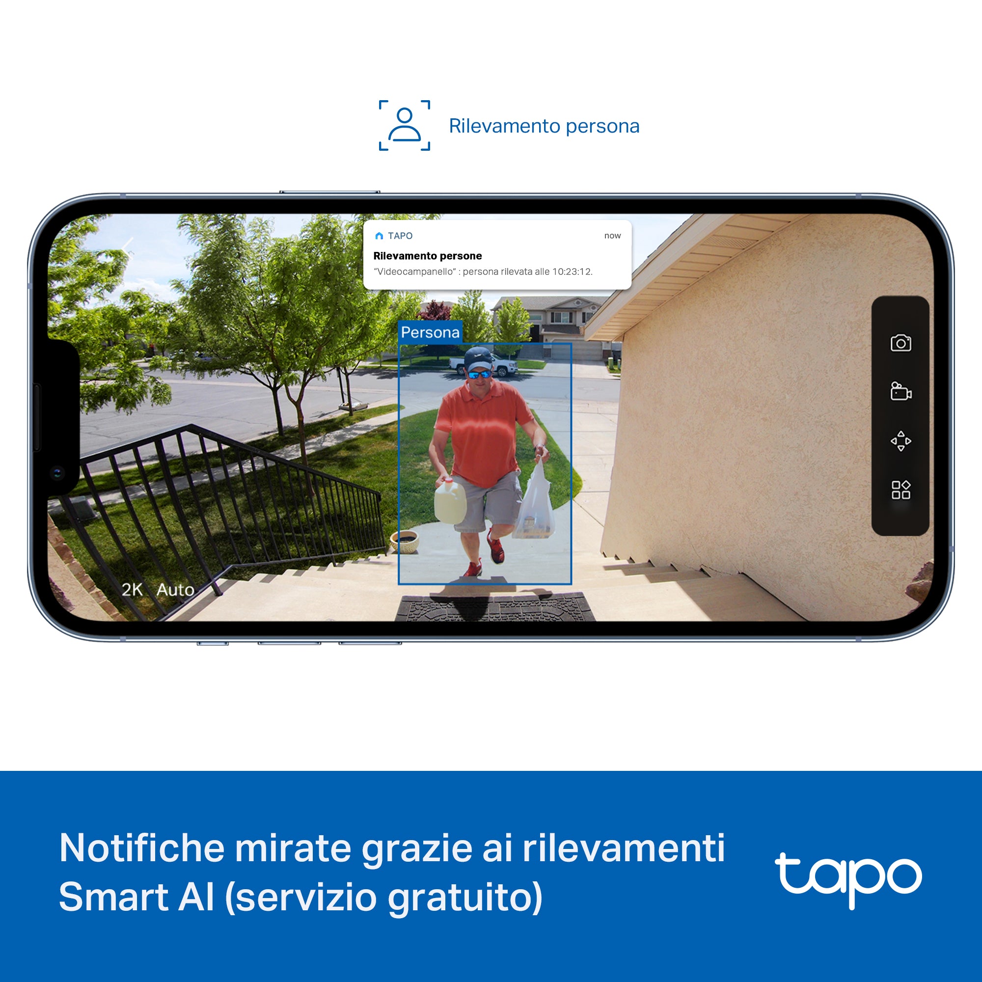 Tapo D205 Video Campanello 2K 3MP, Visione Notturna, Batteria 5200mAh
