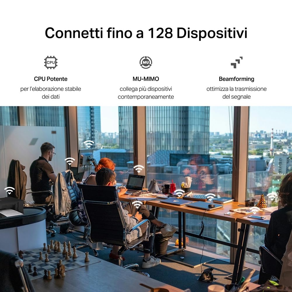 - ● Supporto EasyMesh - Espandi Wi-Fi aggiungendo un extender compatibile con EasyMesh e goditi una rete senza interruzioni di segnale.