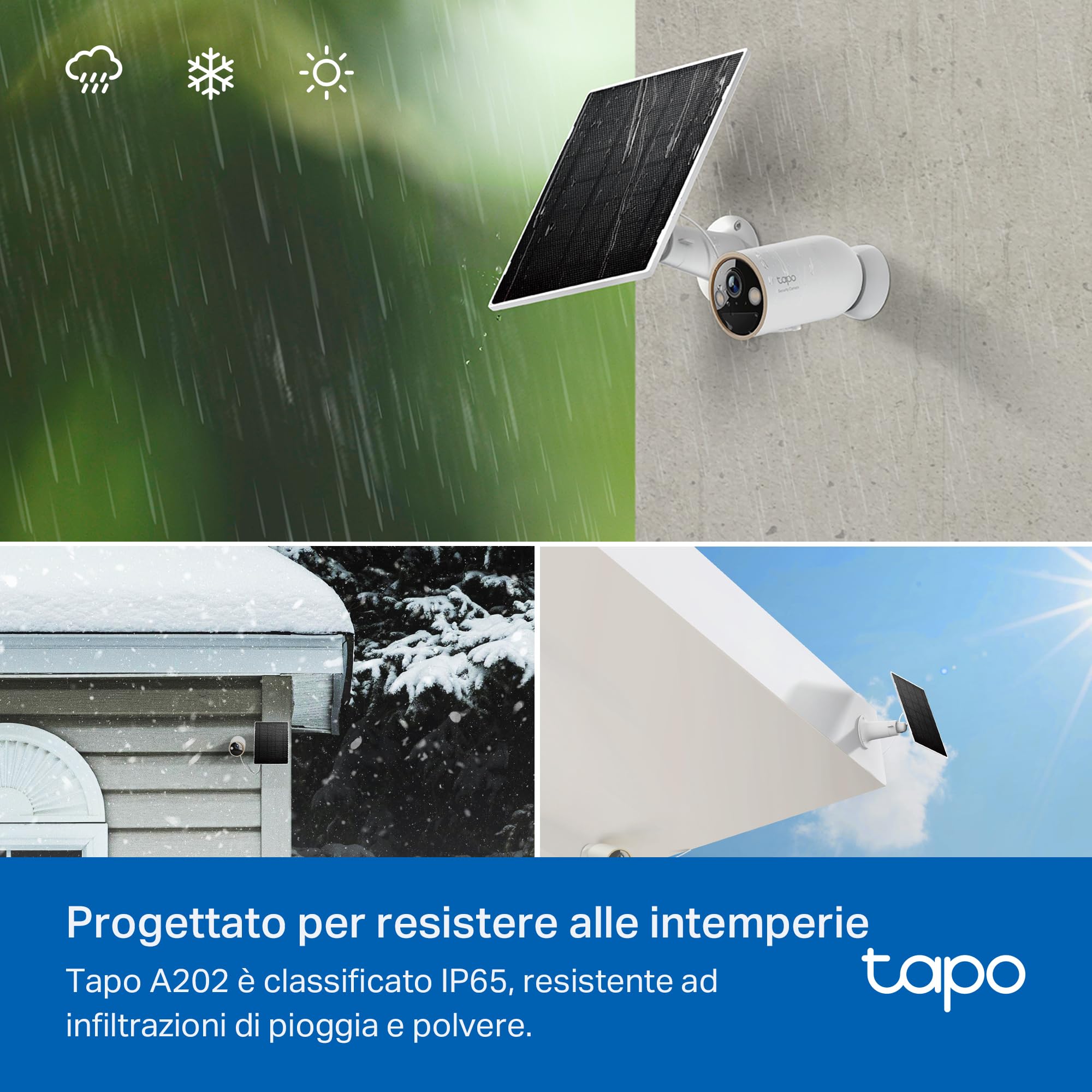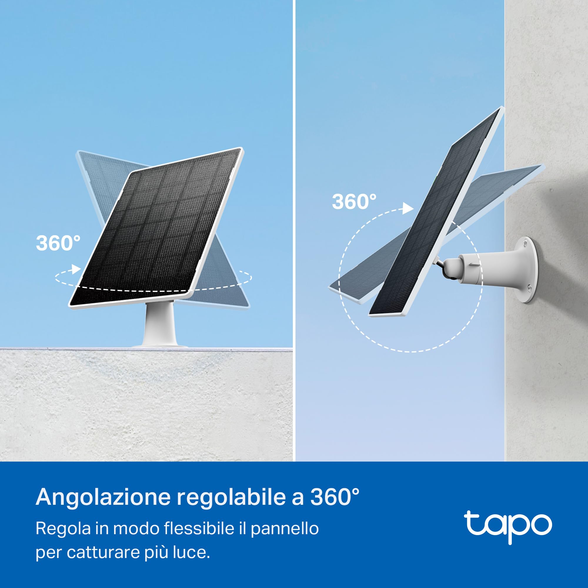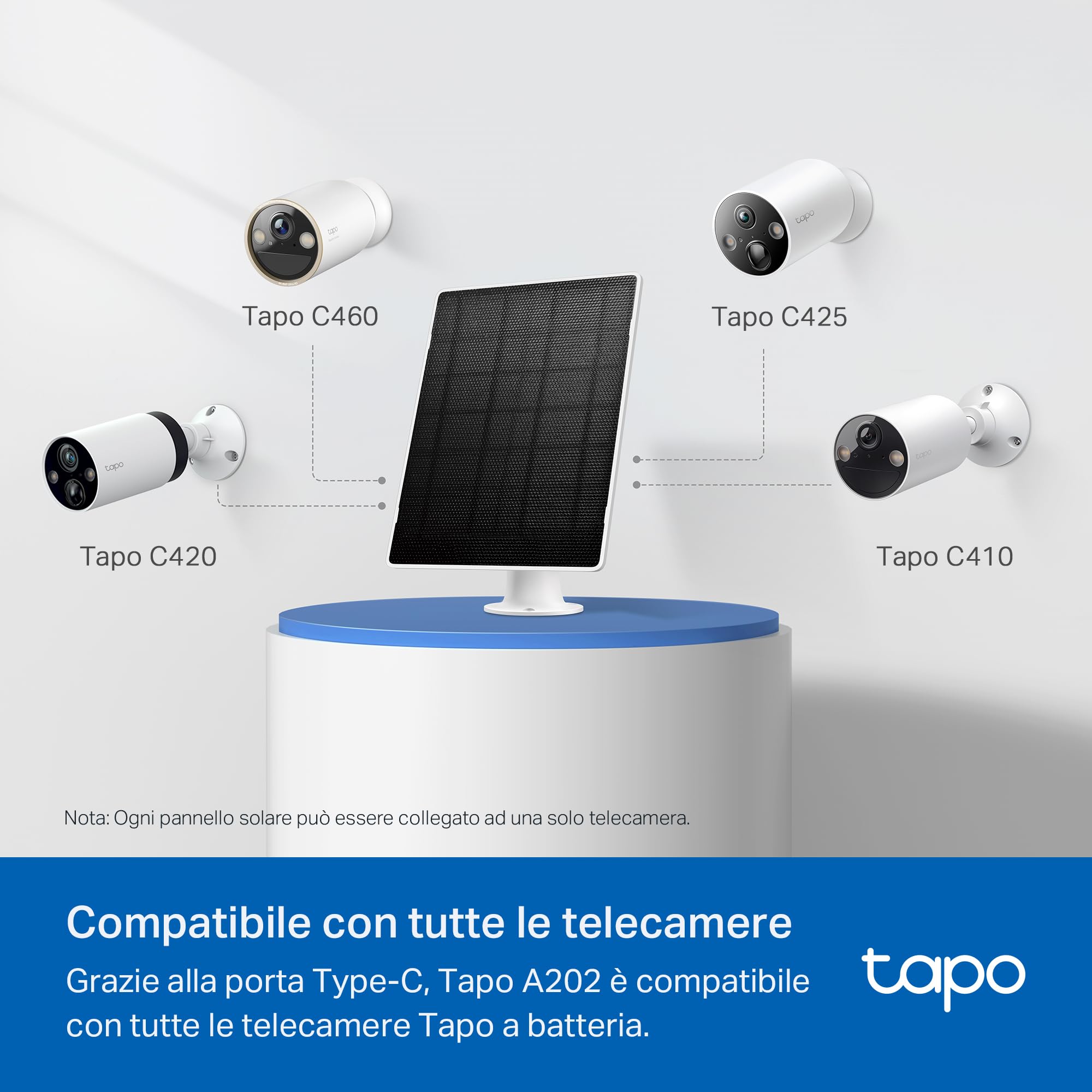 - ● Funziona con le telecamere a batteria Tapo - compatibile con le telecamere a batteria Tapo1, consentendo alla tua telecamera a batteria Tapo di proteggerti tutto l'anno.