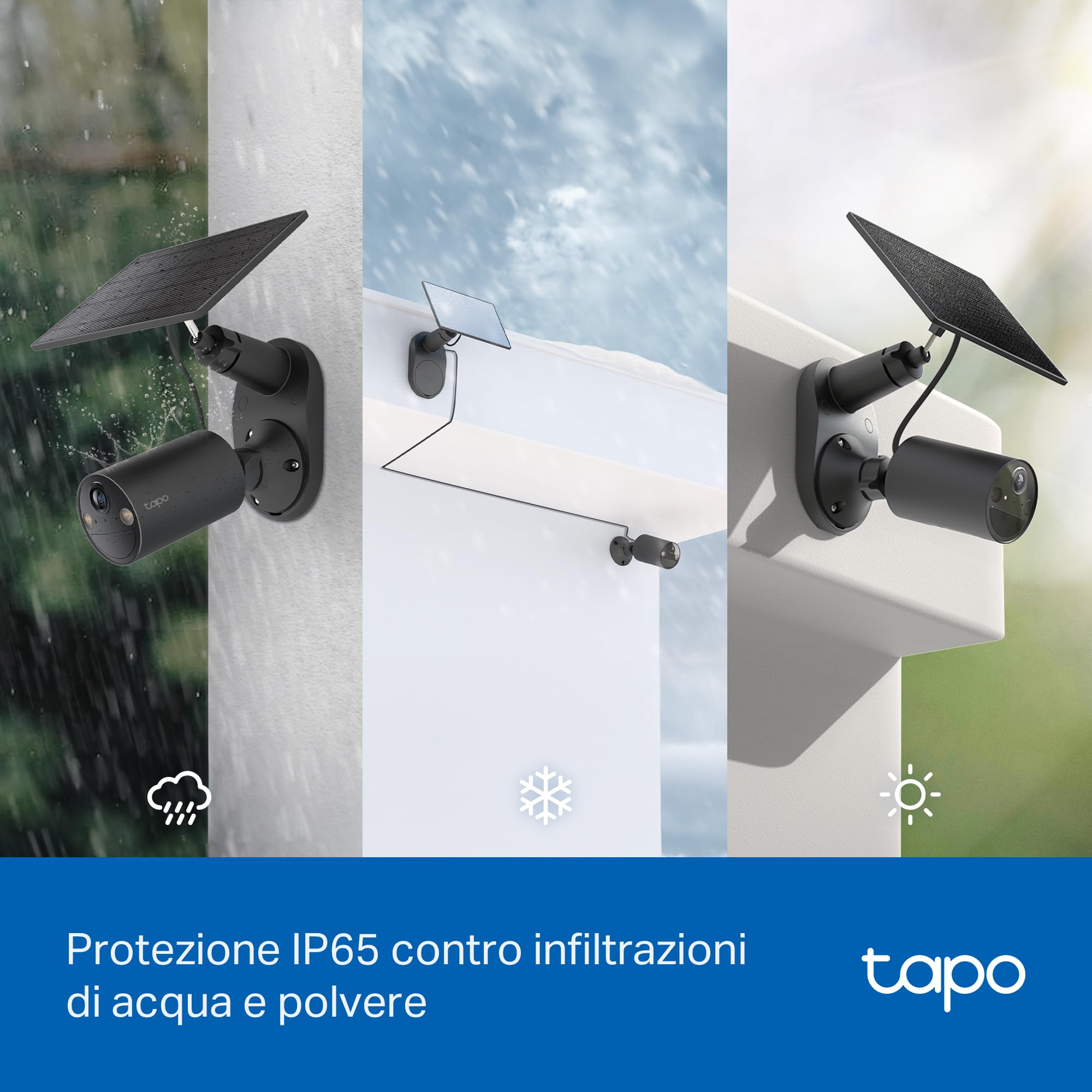 - ● Alimentazione ininterrotta - goditi un'esperienza di sicurezza senza manutenzione con il pannello solare Tapo, che fornisce un'alimentazione continua e un'installazione flessibile.